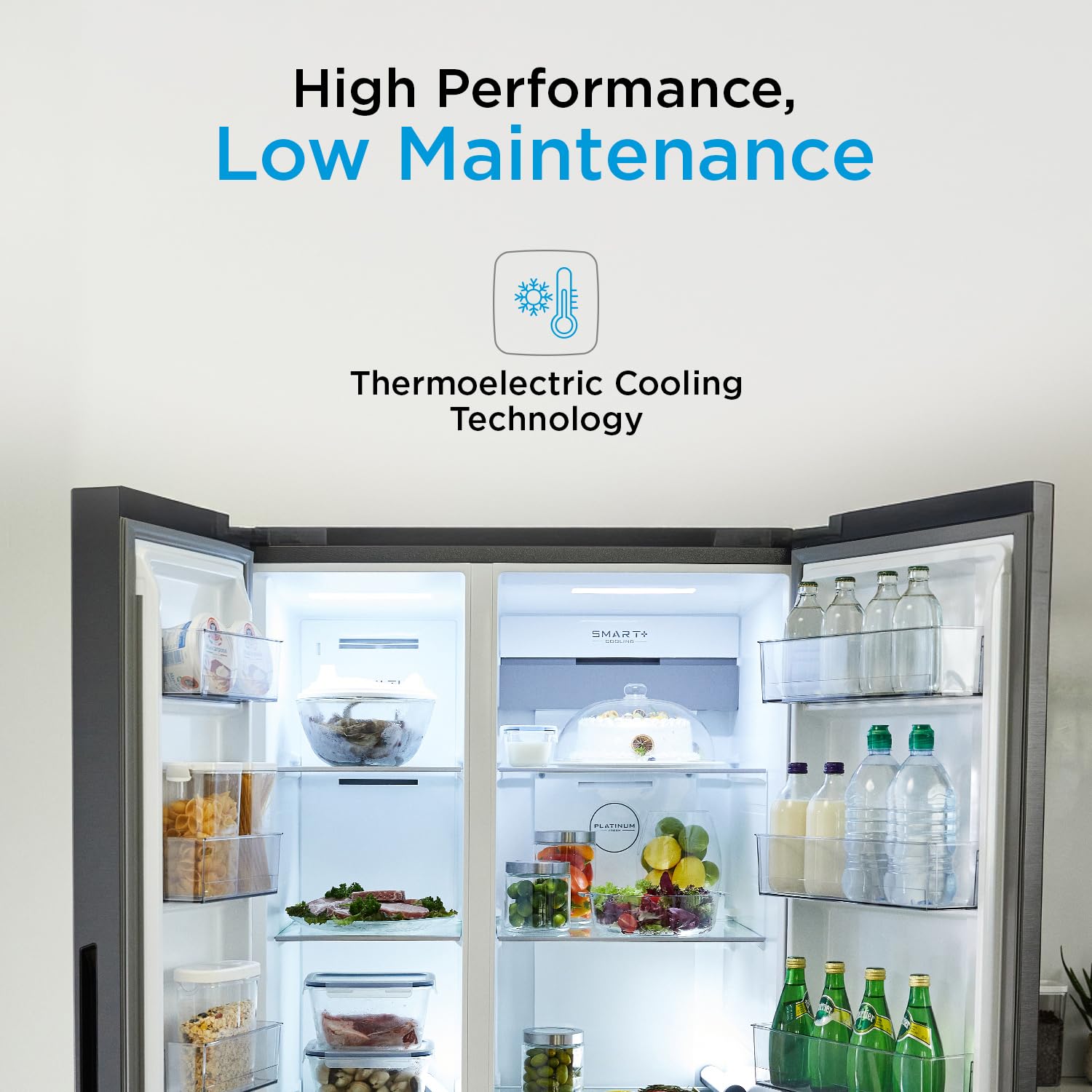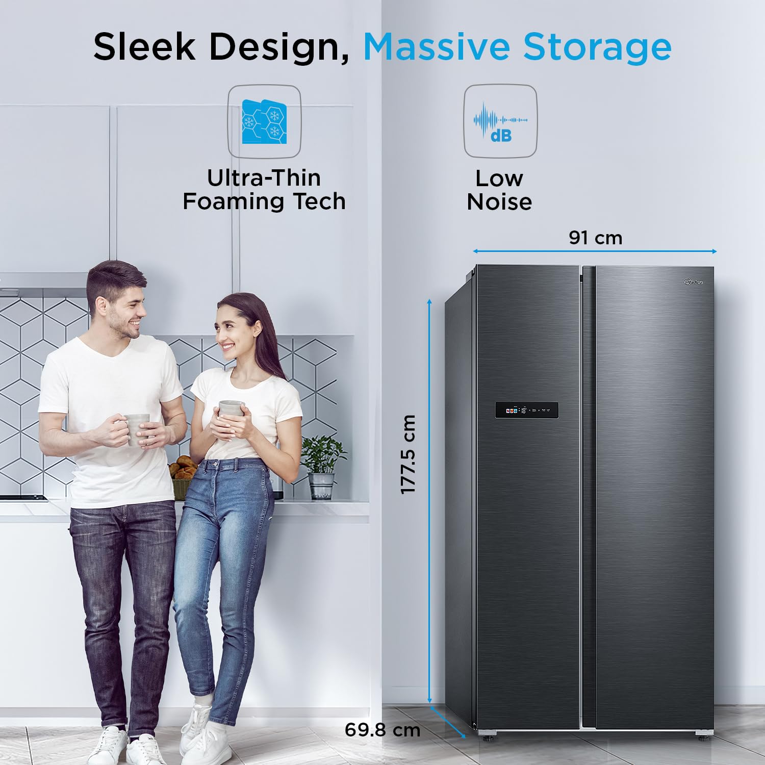 Midea 592 L Side By Side,frost free Wi-Fi Double Door Refrigerator Voice Assistant, App Control, Inverter, (MDRS791MIF28IND Jazz Black)