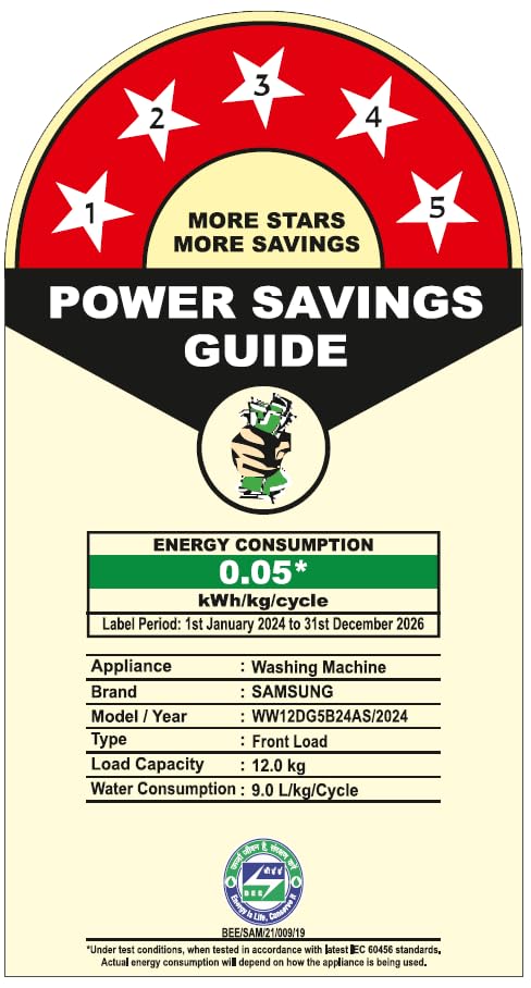 • Capacity 12 kg: Suitable for large families | Water Pressure: (50-800 KPa) | Water Consumption : Refer to BEE label