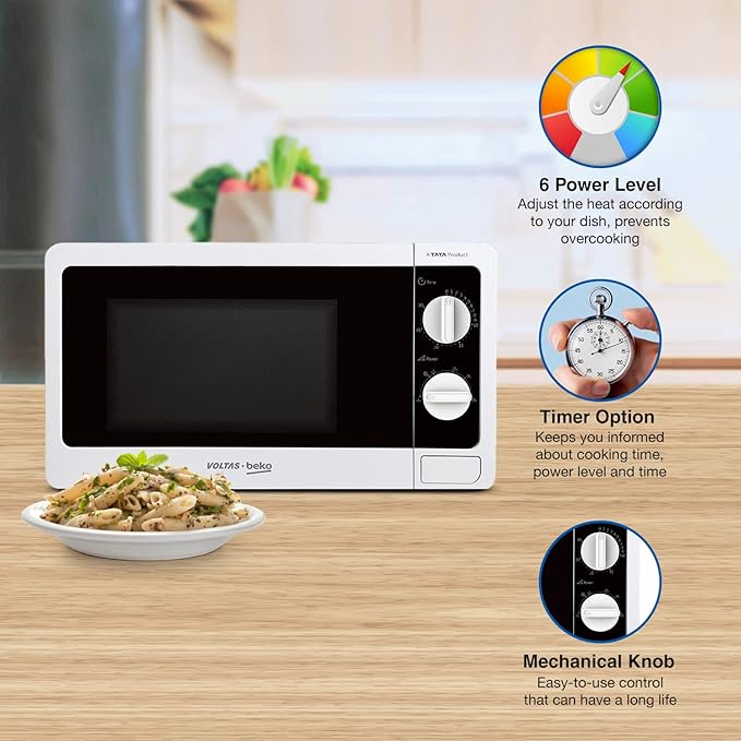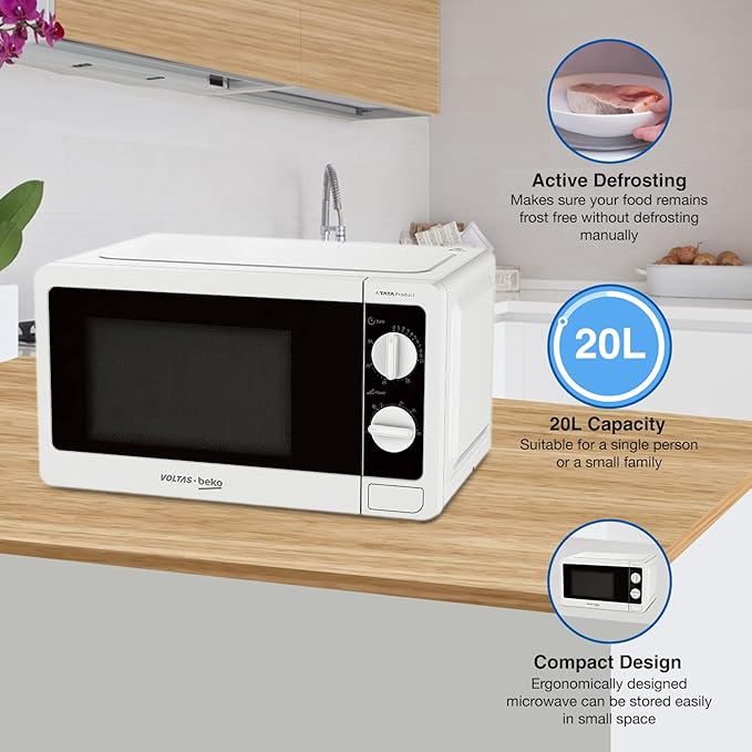 Voltas Beko, A Tata Product 20L, 700W Smart Solo Microwave Oven (MS20MPW10, White)