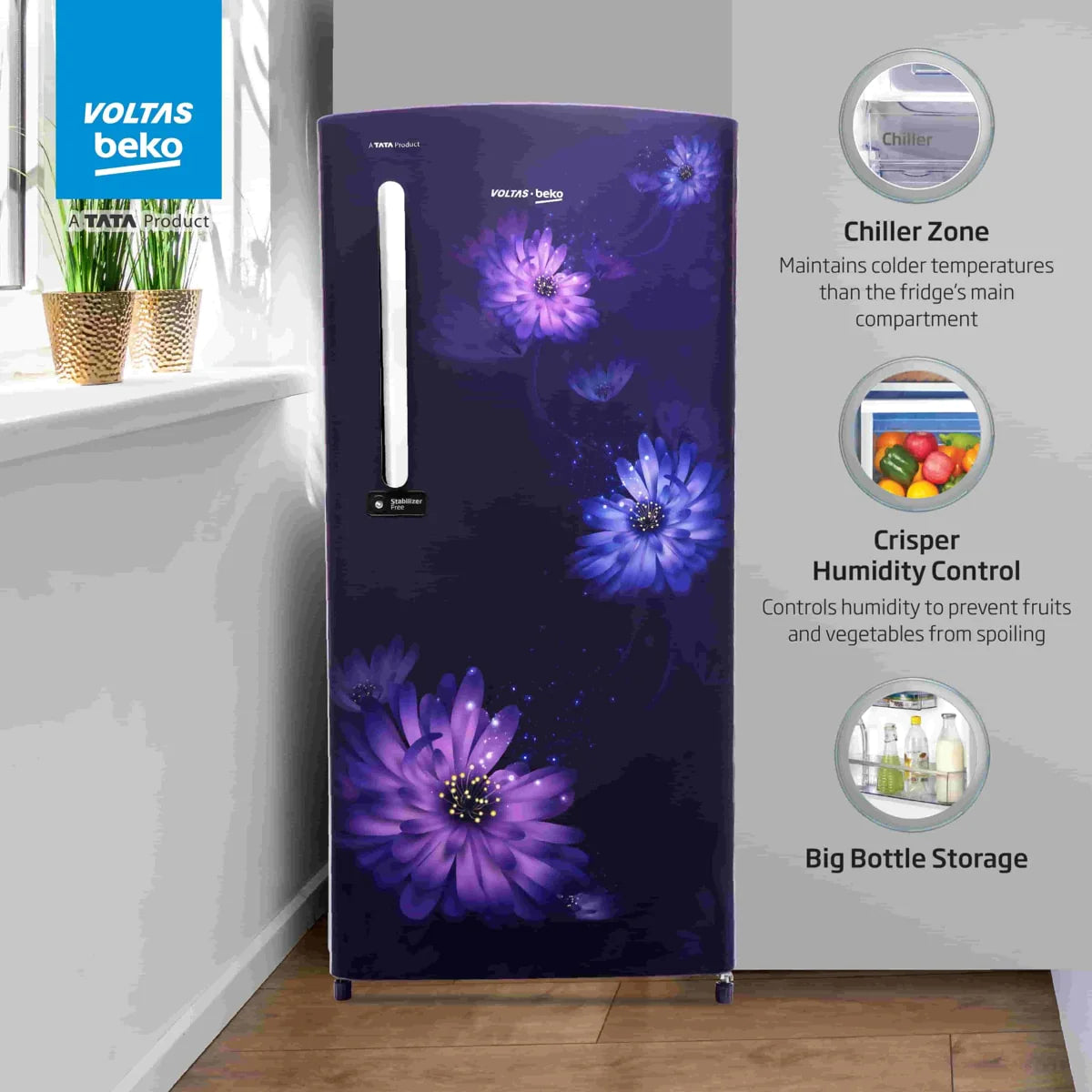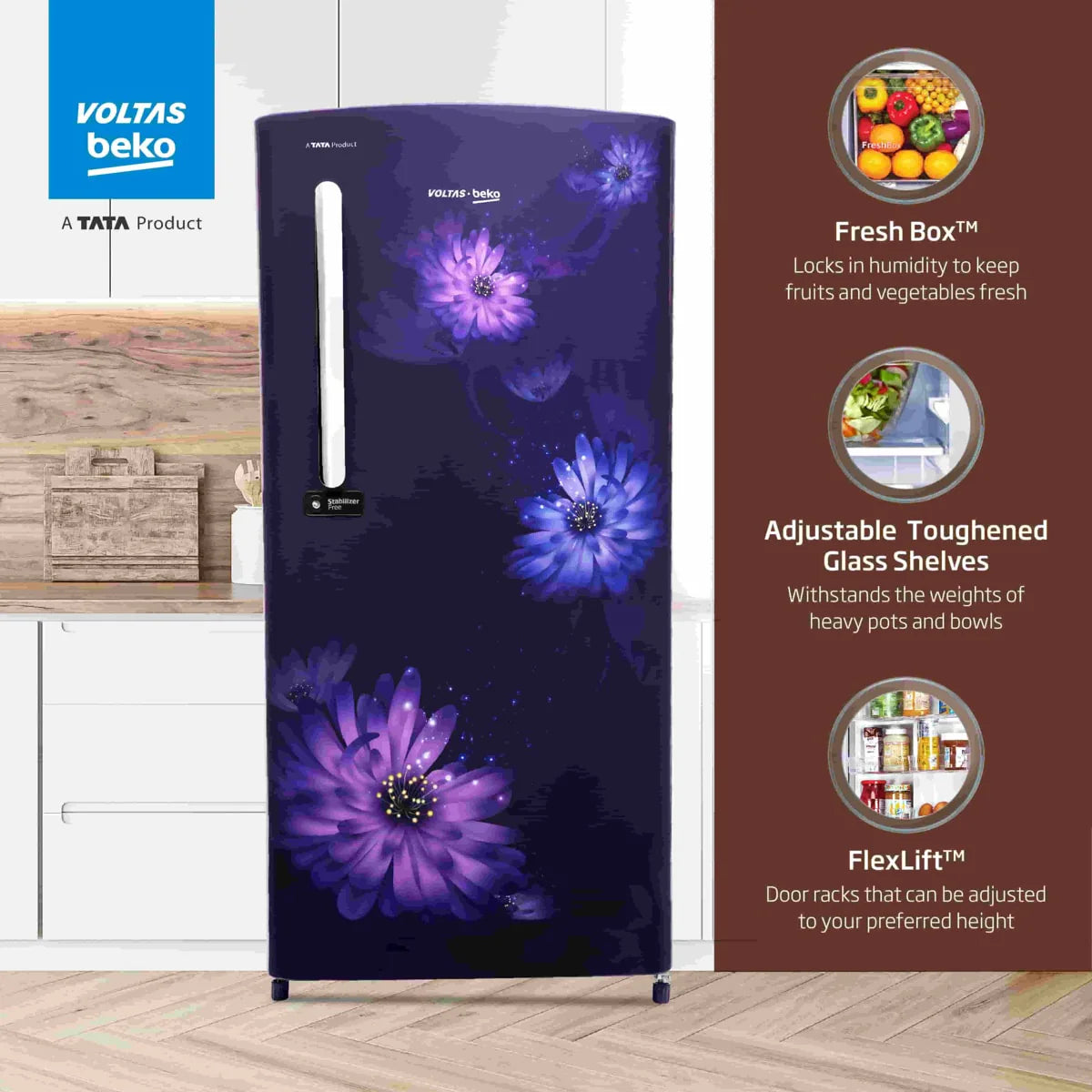 Voltas Beko by A Tata Product 185 L Direct Cool Single Door 3 Star Refrigerator (Dahlia Blue, RDC220C