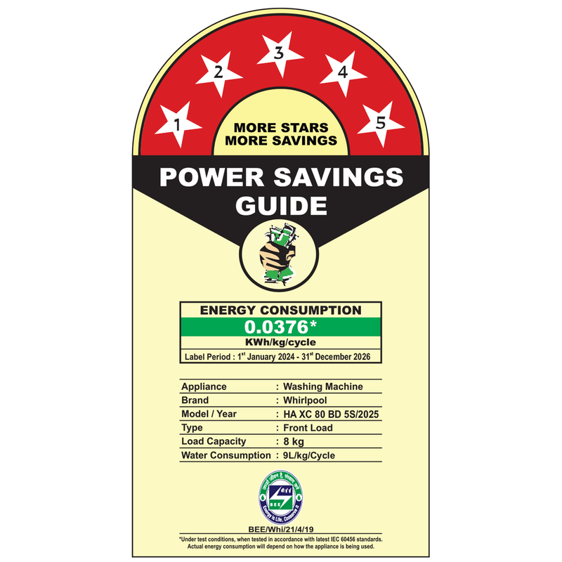Whirlpool 8kg 5 Star Xpert Care Front Load Washing Machine with Ozone Air Refresh Technology & Heater (Inverter)